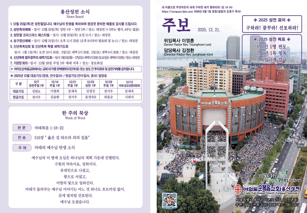 • 2025년 12월 14일 주보 날짜 | 2025.12.16.